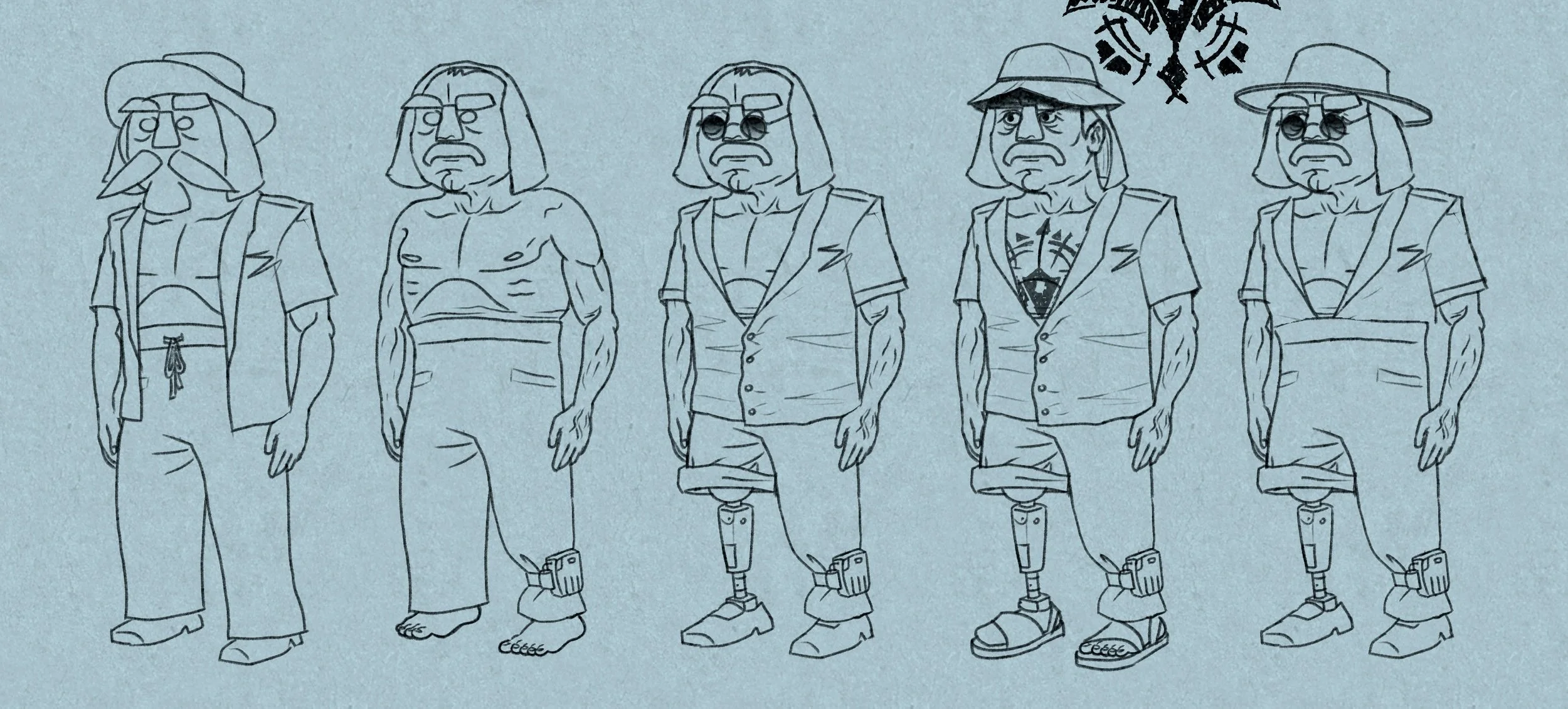 Appearance: old, oddly charismatic, mysterious, hint of greatness, has seen things, rough, defeated in life